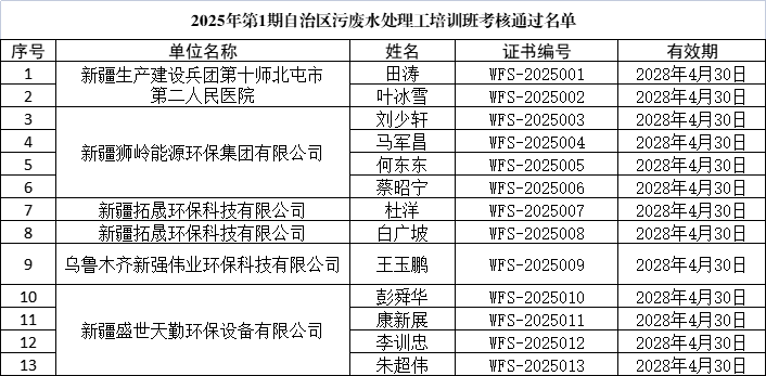 名單公布 | ?2025年第1期自治區(qū)污廢水處理工培訓(xùn)班考核通過名單公布