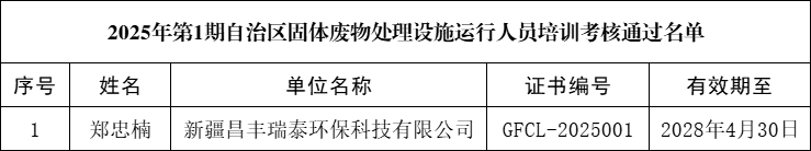 名單公布 | ?2025年第1期自治區(qū)固體廢物處理設施運行人員培訓班考核通過名單公布