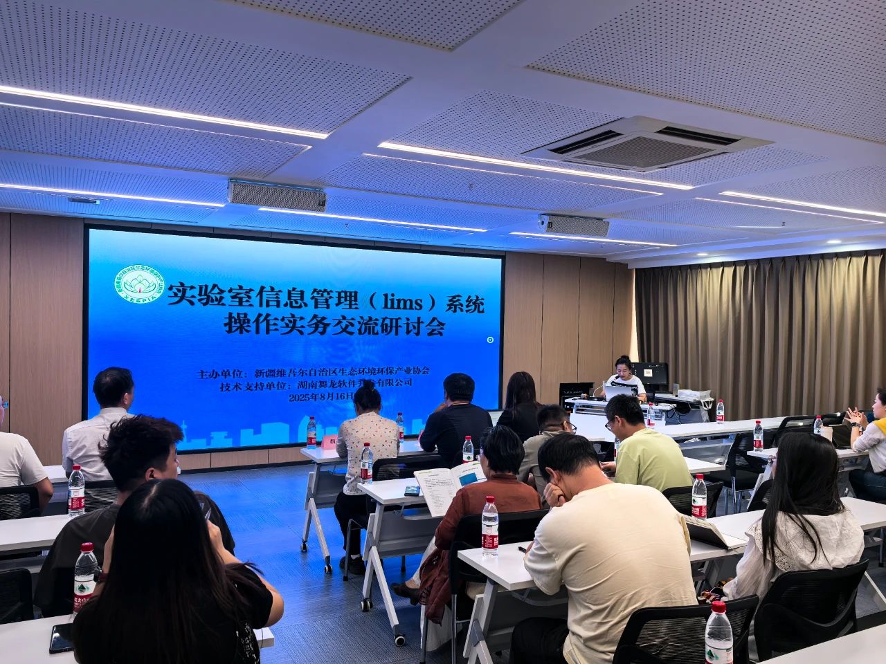 2025年8月16日,由新疆維吾爾自治區(qū)生態(tài)環(huán)境保護產(chǎn)業(yè)協(xié)會(以下簡稱 “協(xié)會”)主辦,湖南舞龍軟件開發(fā)有限公司提供專業(yè)技術(shù)支持的實驗室信息管理系統(tǒng)(LIMS)系統(tǒng)的操作實務(wù)研討會,以“線上和線下”結(jié)合形式順利舉辦。本次研討會吸引全疆各地會員單位參與,其中線上參會達 350余人次,線下參會35人,與會人員共同聚焦LIMS系統(tǒng)應(yīng)用為新疆生態(tài)環(huán)境保護產(chǎn)業(yè)高質(zhì)量發(fā)展注入技術(shù)動能。