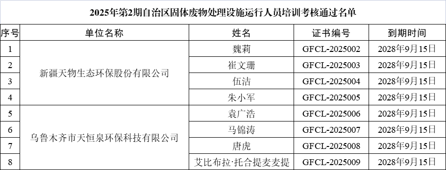 名單公布 | ?2025年第3期自治區(qū)固體廢物處理設施運行人員培訓班考核通過名單公布