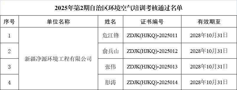 2025年第2期自治區(qū)環(huán)境空氣連續(xù)自動監(jiān)控系統(tǒng)運(yùn)行人員培訓(xùn)閱卷批卷及考勤梳理工作已完成,現(xiàn)將此次培訓(xùn)考核通過名單公布如下: